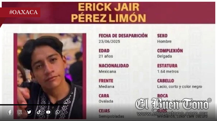 Oaxaca.- La desaparición de Erick Jair Pérez Limón, un joven conductor de taxi originario de Oaxaca, ha trascendido las fronteras nacionales y generado presión internacional sobre el Estado mexicano. El caso es examinado actualmente por el Comité contra la Desaparición Forzada de la Organización de las Naciones Unidas (ONU), mediante la Acción Urgente 2134/2025, que demanda respuestas inmediatas, plazos concretos y sanciones contra los responsables.