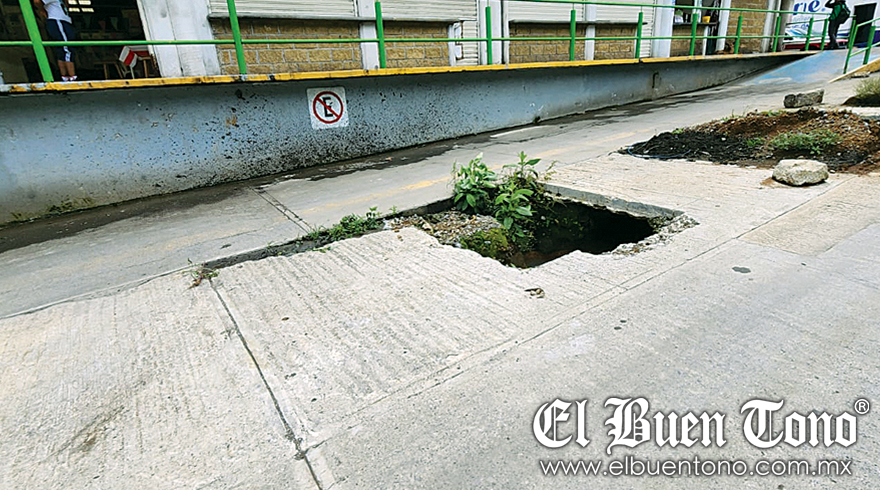 Nogales.- Familias y locatarios del mercado Primero de Mayo solicitan al encargado de la oficina de la Comisión de Agua del Estado de Veracruz (CAEV, que tape los hoyancos que hay en la Cristóbal Colón, entre Nicolás Bravo e Ignacio Zaragoza, donde se acumulan agua negras.