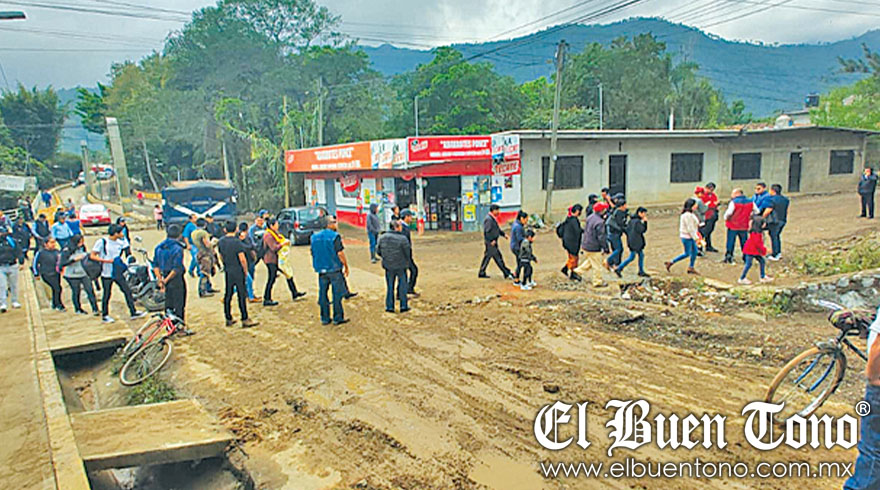 Por la mañana, colocaron piedras y palos a la altura del puente de San Juan del Río, para exigir reparar más de 400 metros de calle que por las lluvias y el tránsito pesado, se convirtió en un lodazal.