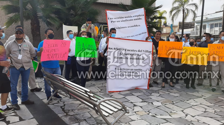 Orizaba.- Trabajadores electricistas de la Sección 84 de Orizaba a través de una protesta solicitaron a su dirigente nacional Victor Fuentes del Villar se convoque a una asamblea para que se elija a un nuevo comité, pues el que encabeza José Luis Luna Luna fue impuesto.