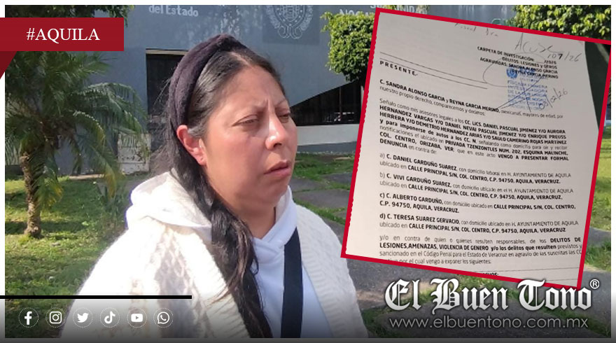 Aquila.- Dos mujeres presentaron una denuncia penal contra la directora del Sistema Municipal DIF de Aquila, Teresa Suárez Gerbacio, su hija Daniela Garduño y su esposo Alberto Garduño, por delitos de lesiones, amenazas y violencia de género, ocurridos durante las celebraciones del Día de la Candelaria.