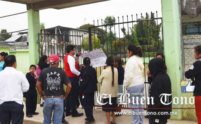 Fue a las 08:00 horas del lunes cuando los padres inconformes colocaron una cartulina e impidieron las labores educativas, y la presencia del Supervisor Escolar para quitar de su cargo a la profesora Perla Rocío Rivera Ventura, quien funge como directora del plantel y maestra del segundo grado.