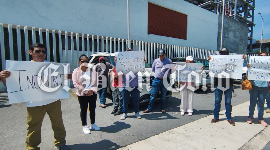 Con pancartas, se manifestaron a la entrada del recinto y denunciaron que esta persona fue detenida de manera injusta y arbitraria por parte de personal de la Policía Ministerial Acreditable.