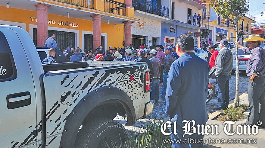 Coscomatepec.- Unos 50 pobladores de Tozongo se manifestaron afuera del Teatro Benito Juárez, donde el alcalde, José Luis Alonso Juárez, dio su Primer Informe de Gobierno, a fin de exigirle obras para la comunidad y apoyo para la fiesta patronal.