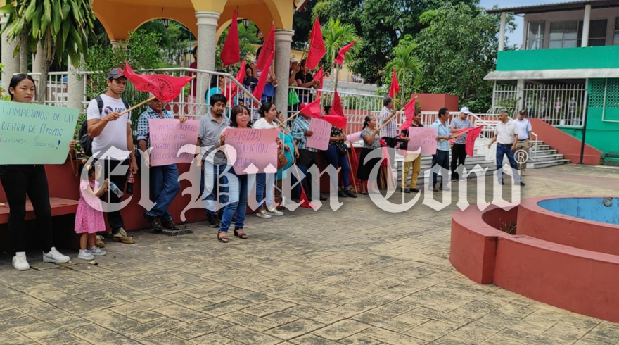 Atoyac.- Un grupo del Movimiento Antorchista se manifestó frente al Palacio Municipal de Atoyac para exigir obras, al menos material para realizar huellas en los caminos.