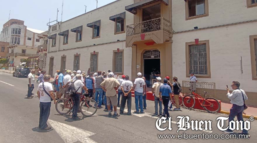 Río Blanco.- Con una manifestación pacífica, ex obreros del Sindicato Revolucionario de Trabajadores de la fábrica de Río Blanco, se manifestaron frente al palacio municipal para exigirle al alcalde, Ricardo Pérez García, les devuelva las llaves del auditorio Benito Juárez, con el que lucra desde hace dos años.