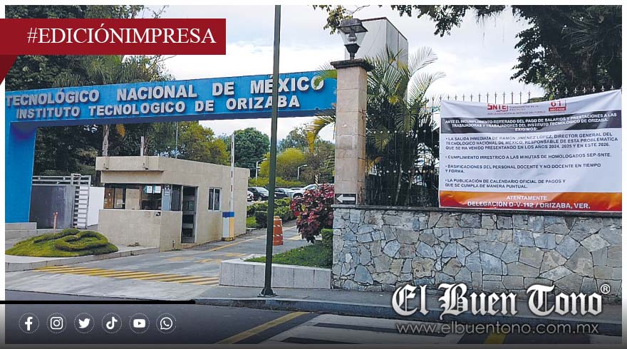 Orizaba.- Personal adherido al Sindicato Nacional de Trabajadores de la Educación (SNTE), sección 61, del Instituto Tecnológico de Orizaba continúa a la espera de pagos pendientes, situación que aseguran vienen enfrentando desde 2024, por lo que ahora exigen la salida del director general del Tecnológico Nacional de México (TecNM), Ramón Jiménez López, al asegurar que tiene la incapacidad de solucionar la problemática.