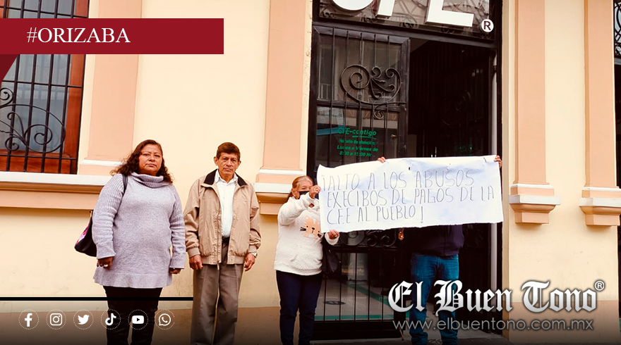 Orizaba.- Un grupo de ciudadanos se manifestó este lunes en las oficinas de la Comisión Federal de Electricidad (CFE) en Orizaba, para denunciar cobros excesivos en el servicio de energía eléctrica.