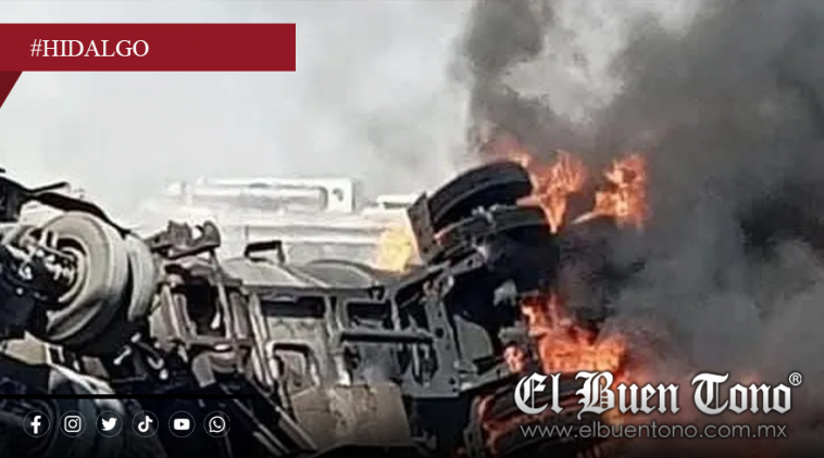 Telcalco, Tula, Hidalgo.— Una pipa cargada con gasolina explotó luego de ser embestida por un tren en un cruce ferroviario cercano a la comunidad de Telcalco, provocando un incendio de gran magnitud y generando pánico entre los habitantes de la zona. El accidente, que ocurrió cuando la unidad intentó ganarle el paso al tren, desató una intensa columna de fuego y humo negro visible desde varios kilómetros a la redonda.
