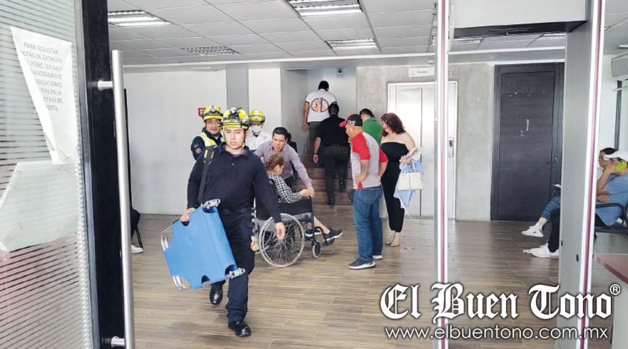 Las dos personas, una mujer en silla de ruedas y su acompañante no pudieron salir, por lo que se dio la voz de alerta, en ese sentido, personal de Protección Civil realizaba maniobras para liberarlos.