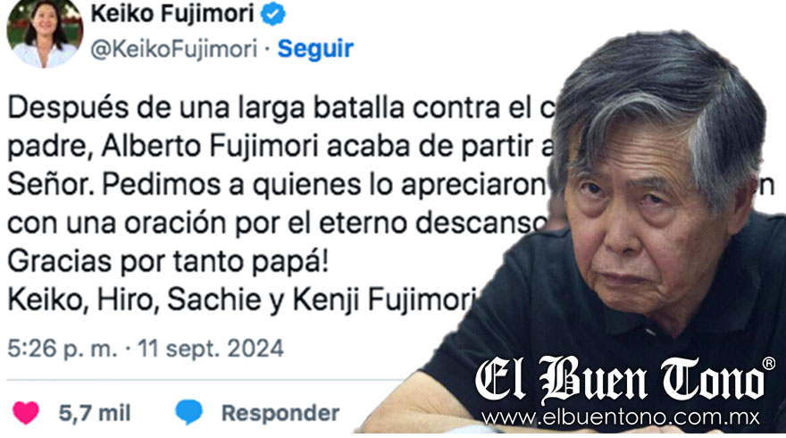 “Después de una larga batalla contra el cáncer, nuestro padre, Alberto Fujimori, acaba de partir al encuentro del Señor. Pedimos a quienes lo apreciaron nos acompañen con una oración por el eterno descanso de su alma. ¡Gracias por tanto papá!”, firmaron Keiko, Hiro, Sachie y Kenji Fujimori, sus hijos, en el mensaje difundido.