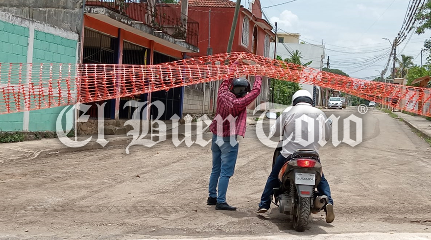 Amatlán.- Aún cuando está cerrada la vialidad en el libramiento, en la cabecera municipal, por la pavimentación con concreto hidráulico algunos conductores hacen caso omiso y alzan la malla para pasar.