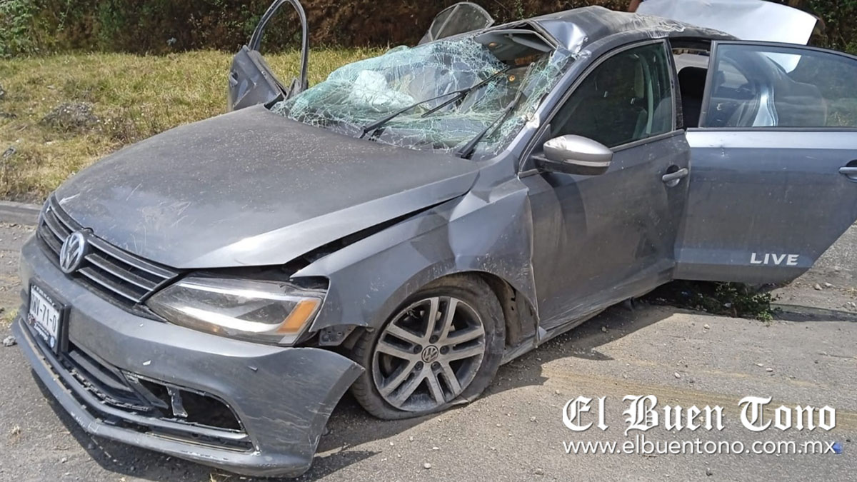 El accidente ocurrió alrededor de las 11:00 horas, cuando al menos cuatro personas viajaban a bordo de un auto Jetta de color gris, con placas de circulación XWV-71-01, sobre el carril que va con