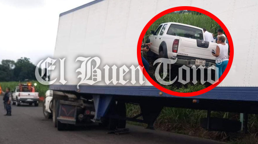 Cuitláhuac.- Una camioneta en la que viajaba una familia terminó fuera de la carretera, al chocar contra un tráiler que circulaba en el tramo San José de Abajo y San José del Corral.