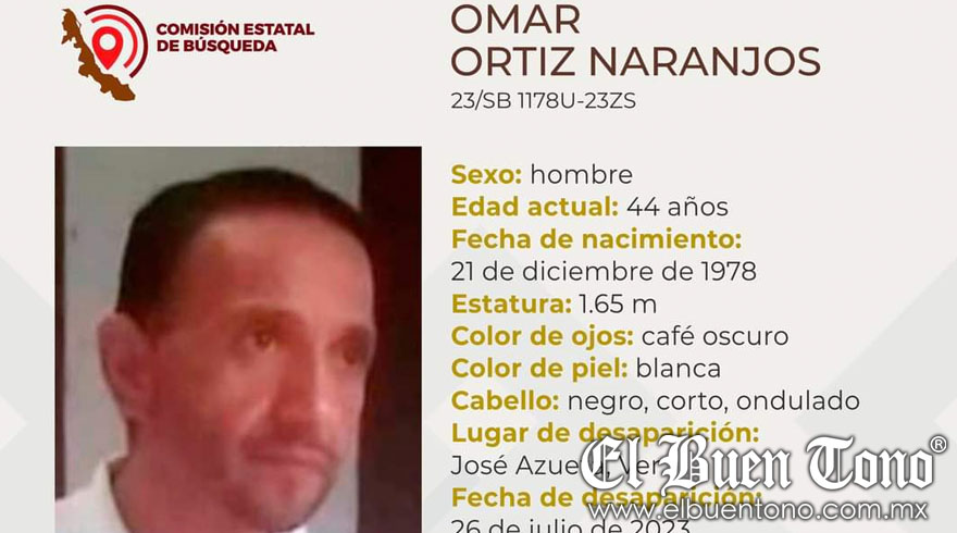 José Azueta, Ver.- Un individuo identificado como Omar Ortiz Naranjo, de 44 años de edad, se encuentra desaparecido desde el pasado 26 de julio.