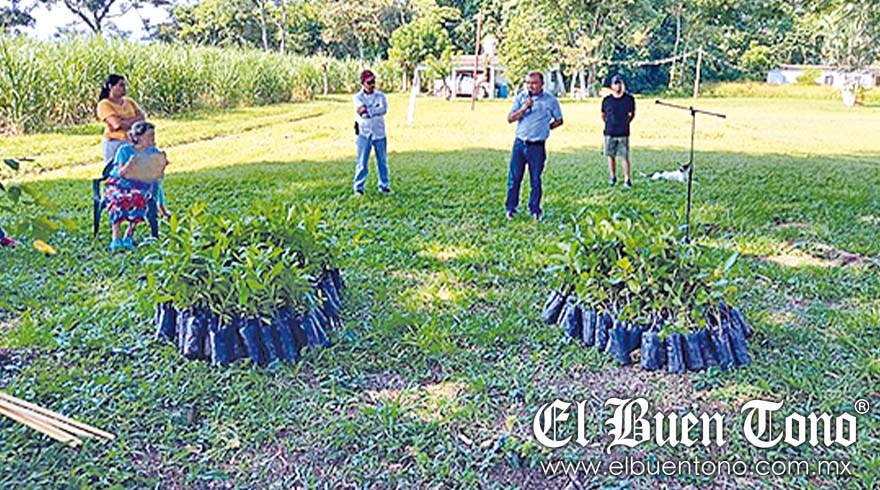 Yanga.- Autoridades municipales entregaron árboles de nanche y pimienta a familias de La Laguna del Carmen, Mirador y San Miguel el Grande, porque colindan con el área natural protegida del Metlác-Río Blanco.