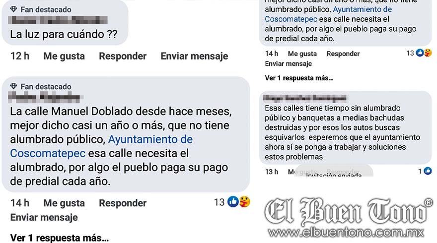 Aseguraron que llevan meses solicitándole al alcalde, José Luis Alonso Juárez “Faroles”, que los dote de iluminación, pero hasta el momento no los ha escuchado, “esperamos que tras el accidente reaccione y prevenga más daños a la población en general”.
