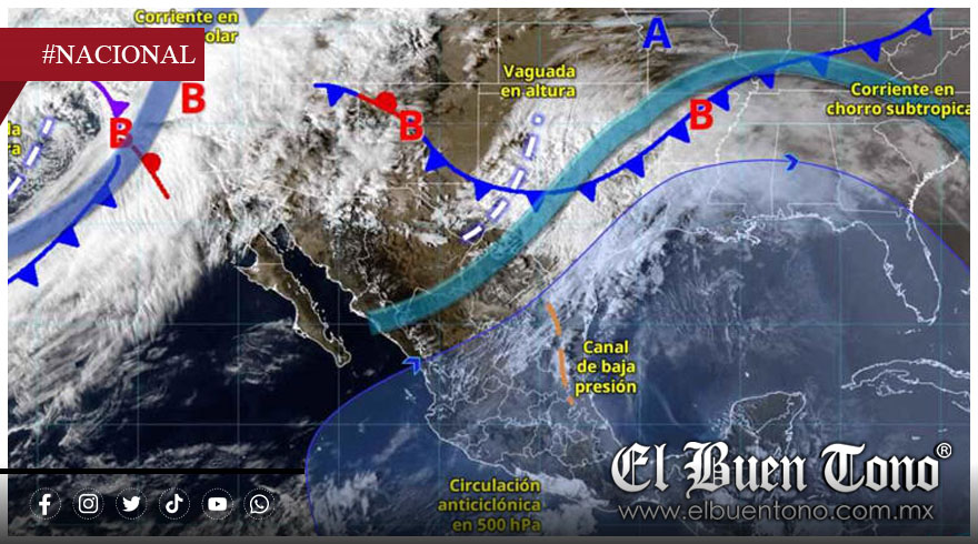 En contraste, un anticiclón en niveles medios mantendrá tiempo estable, con baja probabilidad de lluvias y ambiente cálido a caluroso en gran parte del territorio nacional.
