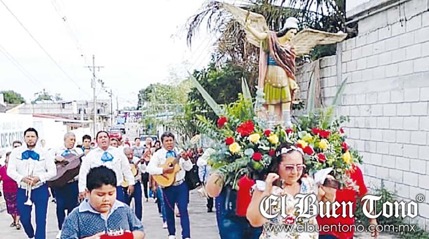 Paso del Macho.- Fervientes católicos celebraron a San Miguel Arcángel con una peregrinación y la bendición de agua para su protección, además de participar en la eucaristía en su honor, que se llevó a cabo en la capilla de este lugar.