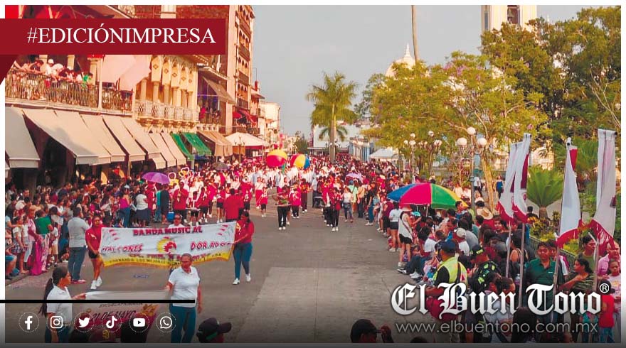 A pesar del intenso sol, alegría y entusiasmo se hicieron presentes en las calles del centro histórico, donde los contingentes desfilaron entre música, porras y muestras de identidad local.