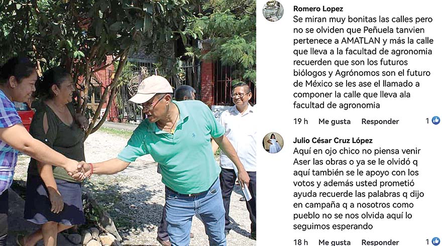 “No se olviden que Peñuela también pertenece a Amatlán y más la calle que lleva a la Facultad de Agronomía, recuerden que son los futuros biólogos y agrónomos del país, por lo que se les hace el llamado para componer ese tramo”, indicó un comentario.