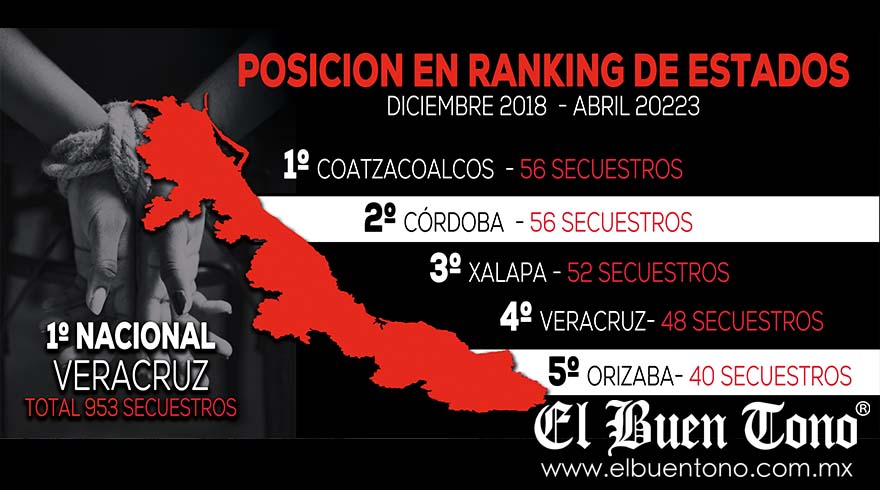 Xalapa.-  En un preocupante informe presentado por la asociación civil Alto al Secuestro, se reveló que cinco municipios en el estado de Veracruz se han convertido en los epicentros del delito de secuestro en México.