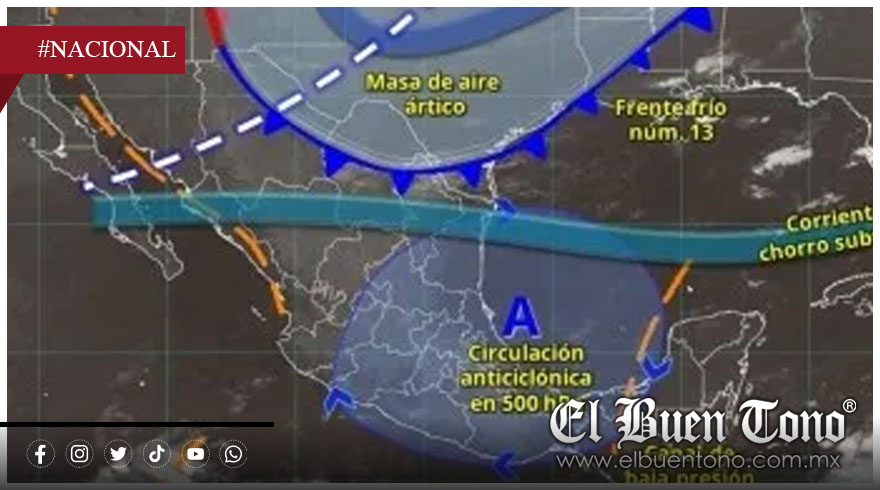 Nacional.- La República Mexicana enfrenta este lunes condiciones climáticas extremas derivadas del Frente Frío número 13 y la masa de aire ártica que lo acompaña, fenómeno que actualmente atraviesa la Península de Yucatán y mantiene bajo alerta a varias regiones del país.