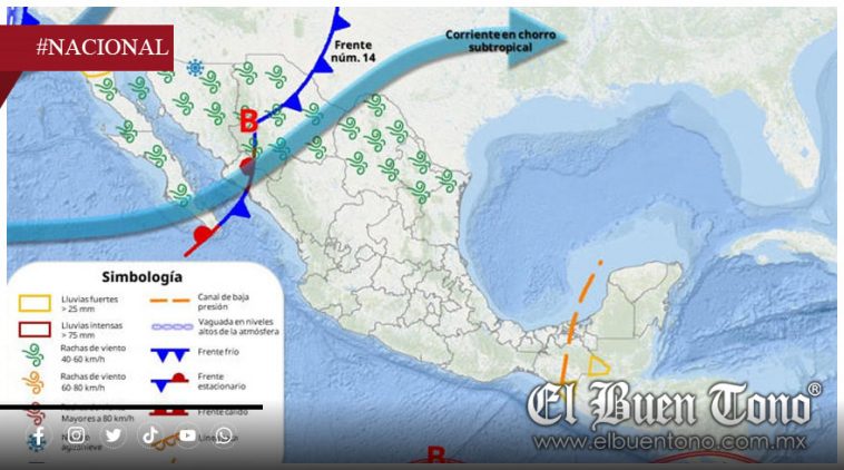 De acuerdo con el organismo, este sistema se desplazará rápidamente hacia Estados Unidos el martes. Sin embargo, su salida coincidirá con la llegada de un nuevo frente frío, acompañado por una circulación ciclónica en niveles medios y altos, además de la influencia de las corrientes en chorro polar y subtropical.