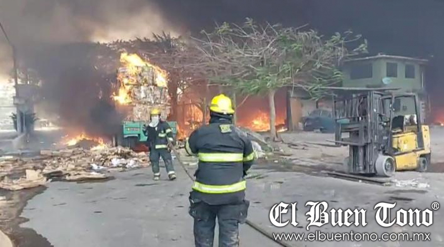 Veracruz, Ver.- La recicladora de cartón ubicada en la  carretera a dos caminos en Dos Lomas, entrada a Tejería, fue consumida por el fuego esta tarde luego de incendiarse  por causas hasta el momento desconocidas. Por el momento no se tiene reporte de personas lesionadas, sin embargo familias de los alrededores tuvieron que ser evacuadas.