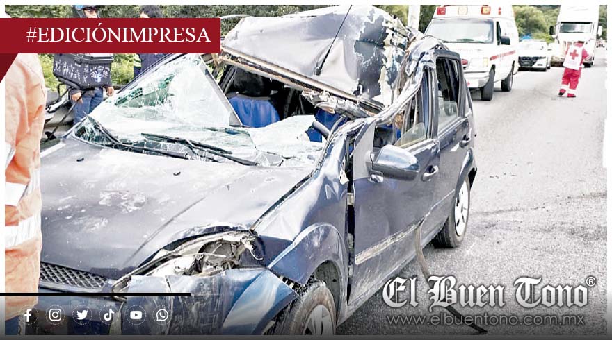 Los vehículos involucrados fueron un camión de carga tipo torton con plataforma, color azul, propiedad de comerciantes de tabiques, y un auto azul con placas YGU-036-B del estado de Veracruz.