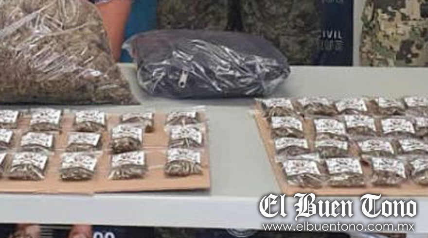 De acuerdo con los reportes policiales, a los jóvenes detenidos identificados como Mario “N” alias “Mayo”, Carlos “N” alias “Kike” y Estefany “N”, les decomisaron 116 bolsas de marihuana, dos parches con la leyenda Ejército Mexicano y una camisa camuflajeada.