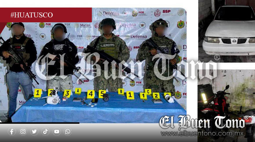 Durante el cateo, las autoridades aseguraron un vehículo con reporte de robo, una motocicleta, droga conocida como cristal, cámaras de vigilancia, cartuchos, una báscula gramera, un teléfono celular y otros objetos de interés. Sin embargo, no se registraron personas detenidas.