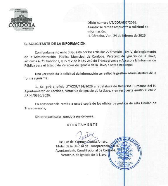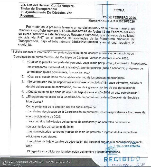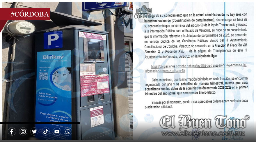 Córdoba, Ver.- Mientras el alcalde Manuel Alonso Cerezo insiste en su narrativa de un gobierno “de puertas abiertas” y promete cero corrupción, los hechos documentados que llegan a la Plataforma Nacional de Transparencia cuentan una historia distinta. La respuesta al folio 950546126000180 es una radiografía de cómo la burocracia municipal, lejos de abrir puertas, las cierra con candados administrativos y argucias legales para mantener en la opacidad uno de los recursos más sensibles: los ingresos por parquímetros.