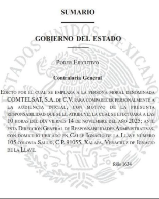 El edicto fue firmado por Luis Francisco Jiménez López, director general de Responsabilidades Administrativas de la Contraloría General del Estado de Veracruz, quien instruyó el emplazamiento a la empresa para responder por las presuntas faltas cometidas en agravio del servicio público.