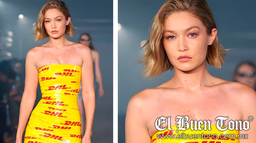 La Paris Fashion Week ha sido un espectáculo impresionante, y Gigi Hadid ha logrado robarse todas las miradas en el desfile de Vetements. La modelo deslumbró con un mini vestido ajustado confeccionado de cinta amarilla de DHL, adornado con el icónico logo rojo de la compañía. Esta original pieza no solo resalta la creatividad de la moda, sino que también juega con elementos comunes, desafiando las nociones tradicionales de la alta costura.