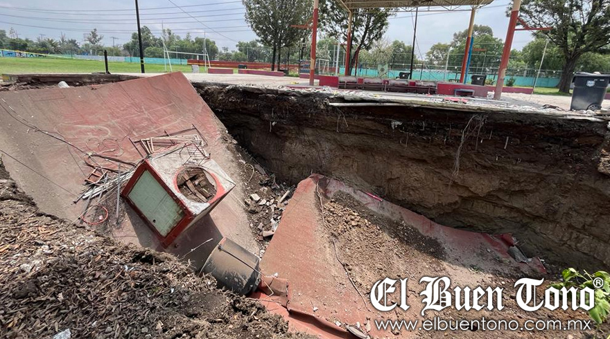 El área afectada dentro del deportivo tiene aproximadamente 18 metros de diámetro por 10 metros de profundidad y se suma a otro socavón que se había abierto en el mismo sitio días antes. La situación se tornó más grave con el paso de los días y la madrugada de este jueves, debido a las fuertes lluvias, provocó el hundimiento del edificio sobre el terreno de la demarcación.