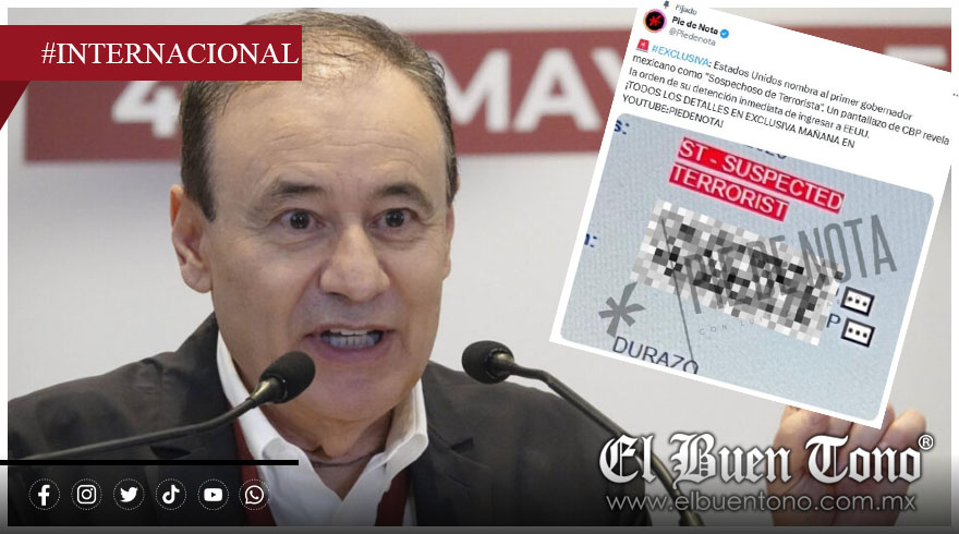 Chaparro mostró durante su transmisión una captura de pantalla atribuida al sistema interno de la Oficina de Aduanas y Protección Fronteriza (CBP), donde se lee claramente el apellido “DURAZO” junto a la leyenda “ST – Suspected Terrorist”. El periodista afirmó que, si el gobernador cruzara nuevamente a EE.UU., sería detenido sin excepción.