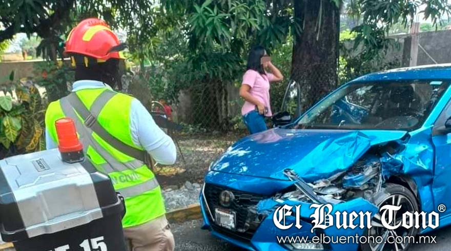 Vecinos solicitaron el auxilio a Protección Civil, acudieron a prestar atención al conductor del auto impactado, quien sufrió el susto y lesiones menores.