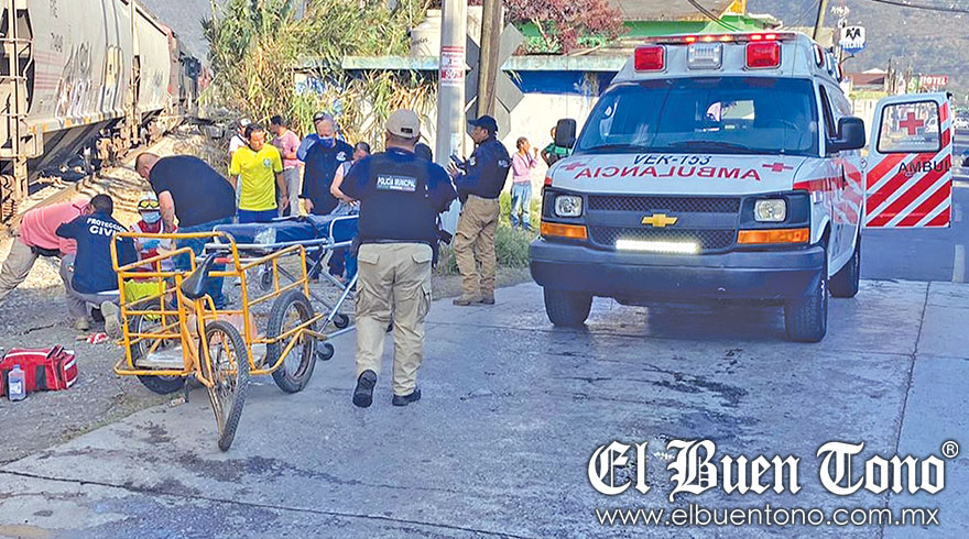 Ciudad Mendoza.- Un joven de 24 años resultó gravemente herido después de ser golpeado por un tren de carga en el cruce ferroviario ubicado en la altura del DIF municipal. El accidente ocurrió ayer a las 17:00 horas, cuando el joven identificado como Martín Torija Cruz, quien es residente de la ciudad, intentó pasar primero que el tren en su triciclo de color amarillo.