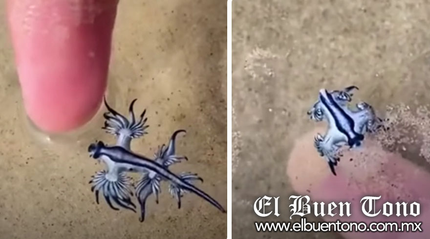 Fascinado con el extraño aspecto del animal, el usuario @julianobayd se grabó sacando del agua una pequeña babosa de mar de rayas azules y preguntó si alguien sabía de qué especie se trataba.
