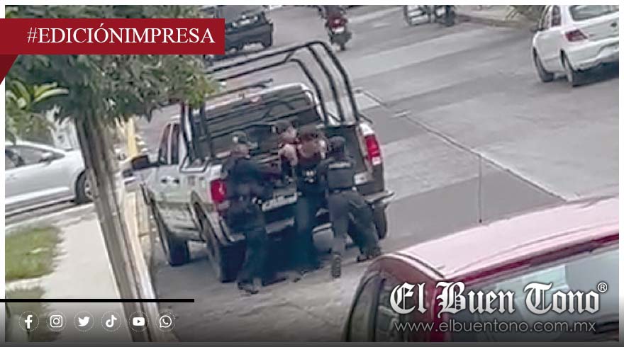 Mediante jaloneos fue subido a la unidad policiaca y trasladado a las instalaciones del Mando Único en la colonia Santa Cruz Buena Vista.