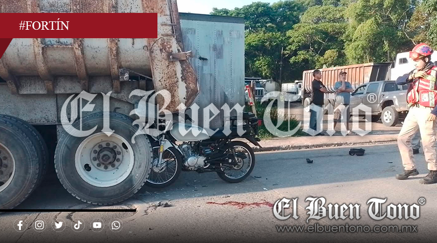 Fortín.- Un motociclista identificado como Alfredo Crespo, vecino de la colonia San José, resultó gravemente herido luego de impactarse por alcance contra un camión de volteo sobre la calle principal de dicha colonia, cerca del rastro de aves de San Antonio.