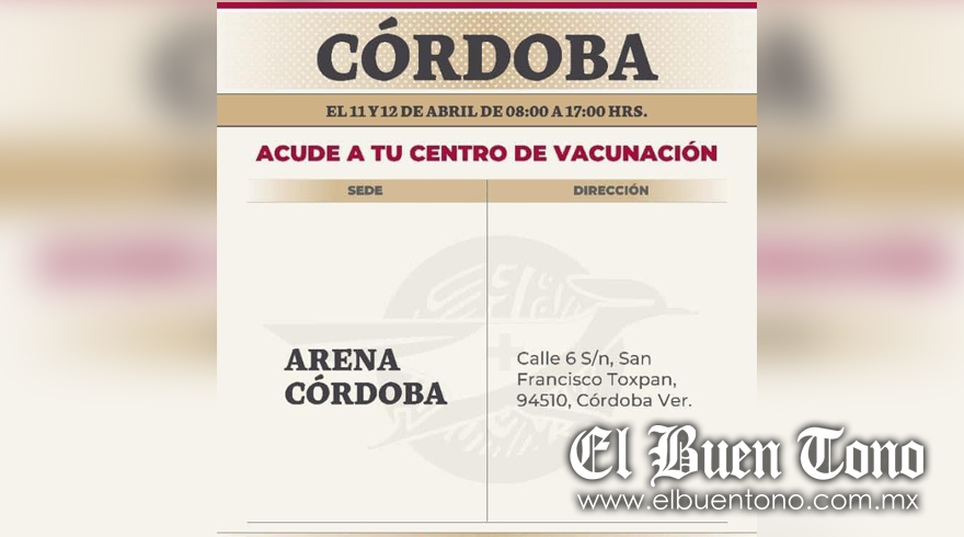 Córdoba.- Los días lunes 11 y martes 12 de abril se efectuará la Jornada de Vacunación para la aplicación de la dosis de refuerzo contra el Covid -19 teniendo como única sede las instalaciones de la Arena Córdoba.