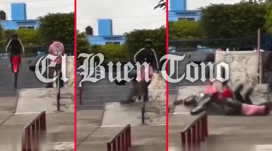 ORIZABA.- Un motociclista se puso a hacer acrobacias en el área de patinetas y patines, el cual es un sitio exclusivo para niños y jóvenes, y al descender por unas escaleras a velocidad excesiva chocó contra otro hombre que se encontraba observando por lo que ambos resultaron lesionados, hoy por la mañana a un costado del Instituto Tecnológico de Orizaba (ITO).