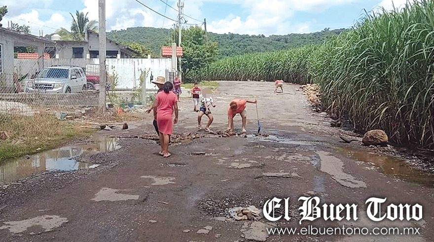 Cuitláhuac.- Vecinos de la colonia Santa Rosa, se unieron para tapar los baches que se encuentran a lo largo de la entrada de la colonia pues el pavimento se