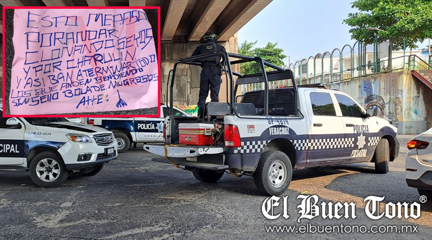 Los restos cercenados se encontraron junto a una bolsa de plástico color negro, y a su lado una cartulina con un mensajes que decía, “Esto me pasó por andar clonando seyos, y por chapulín, y así van a terminar todos los que anden vendiendo sin sello, bola de mugrosos: Atte y aparece la figura de una escoba.