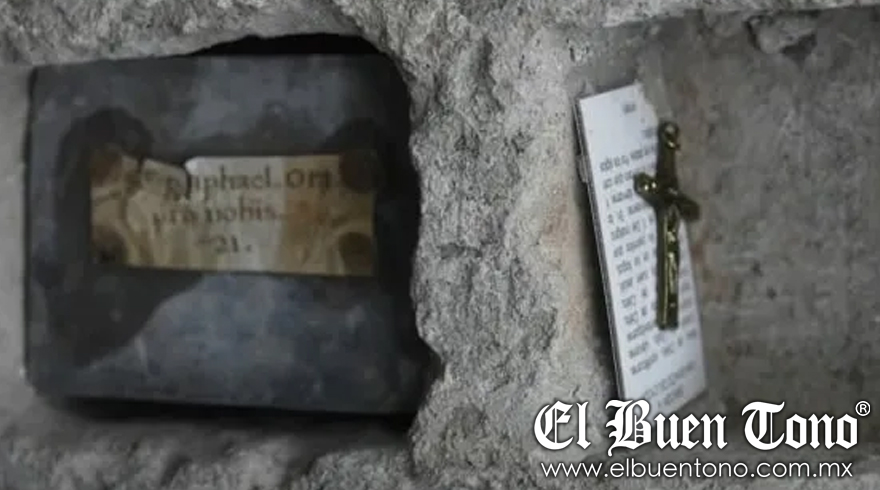“Junto a este primer hallazgo, se advierte la presencia de cuatro baldosas de barro contiguas que curbrian otros nichos, que albergaban cajas forjadas de plomo con inscripciones en latín con las leyendas: Sante Gabriel, ora pronobis 22; Sante Raphael, ora pronobis 21; Sante Ioannes Euaeg, ora pronobis 20”, informaron las autoridades.