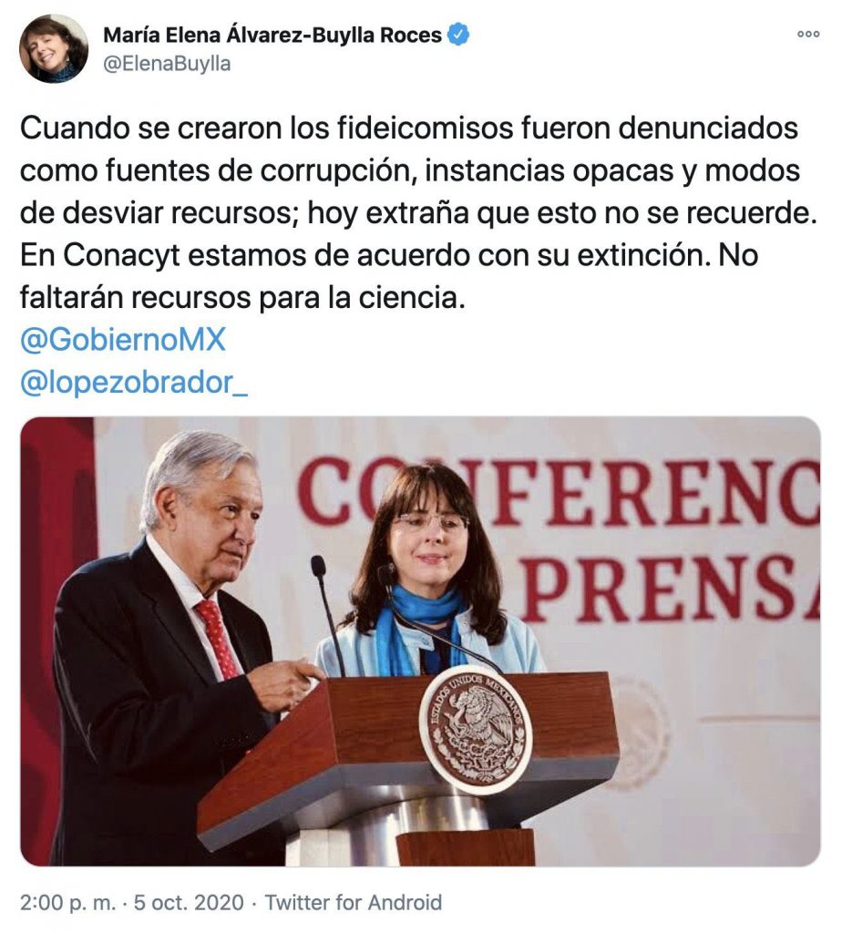 Álvarez-Buylla ha negado cualquier responsabilidad penal o administrativa, calificando como “falsas” las acusaciones y asegurando que la extinción de los fideicomisos se realizó de manera “exitosa, eficiente y con apego a la normativa”. Asimismo, explicó que las observaciones derivaron en la renuncia de su titular de Administración y Finanzas y en procedimientos internos para deslindar responsabilidades.