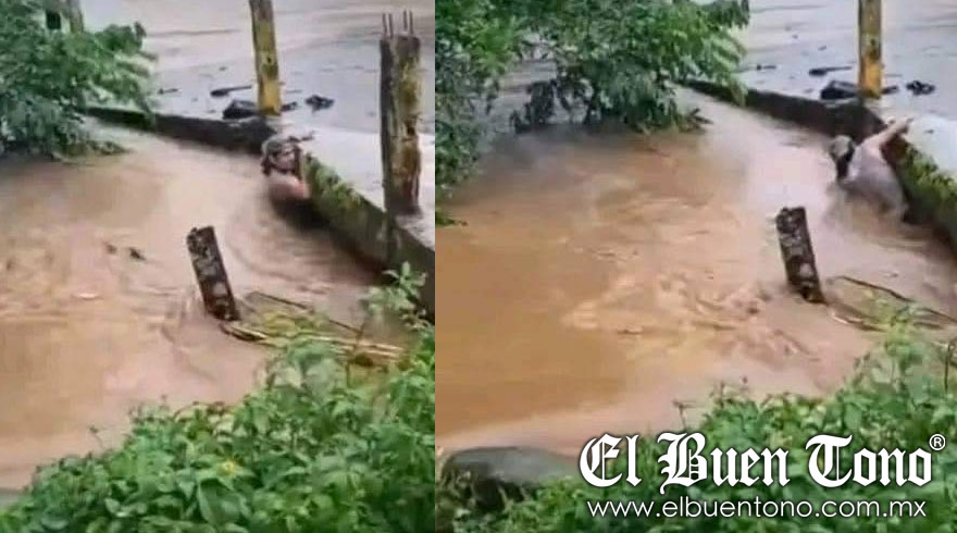 La Victoria, Catemaco.- Un hombre, identificado como Rodrigo Rodríguez, fue arrastrado por la corriente del río en La Victoria mientras luchaba por aferrarse al pavimento del puente.