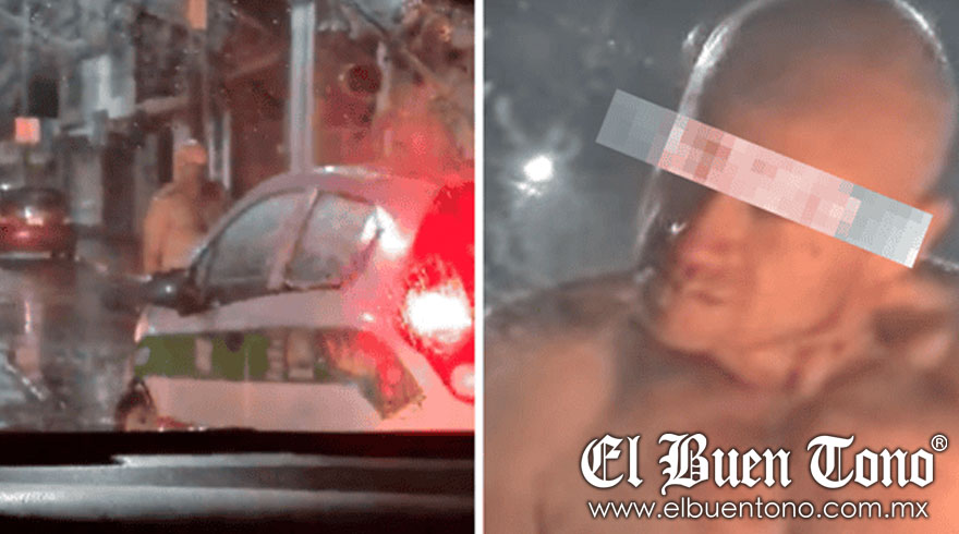 El sujeto, sin camiseta y visiblemente alterado, descendió de un automóvil y comenzó a plantarse frente a los autos en el carril hacia Xalapa 2000. Con movimientos erráticos, obstruía el paso y asustaba especialmente a quienes viajaban con niños. Según testigos, llegó incluso a golpear un vehículo en el que iba una familia, lo que desató momentos de verdadera tensión.